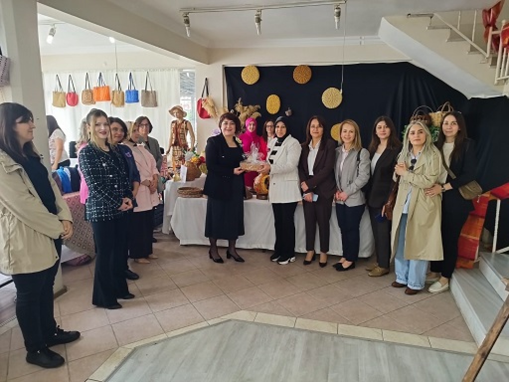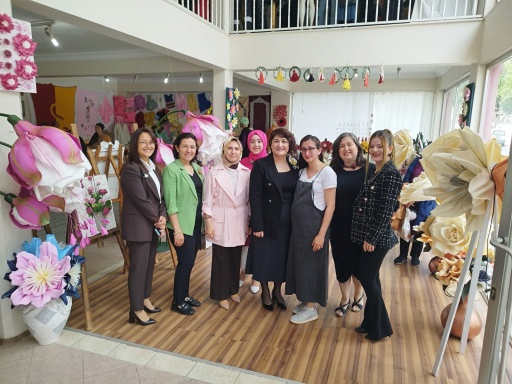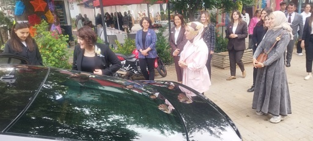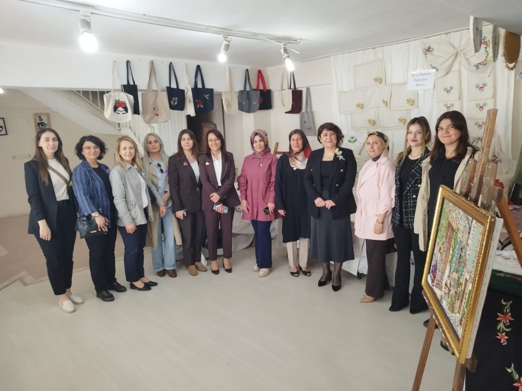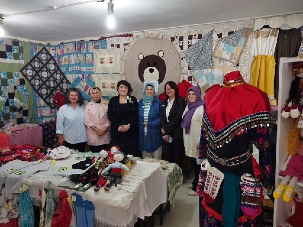 Sayın Valimiz Naci AKTAŞ' ın eşi Nagehan AKTAŞ ve Sayın Kaymakammız Cuma EMEÇ'in eşi sergimizdeki standları tek tek gezip beğenilerini dile getirerek; kursiyerlerimizin ve Usta öğreticilerimizin motive olmasını sağlamışlardır.