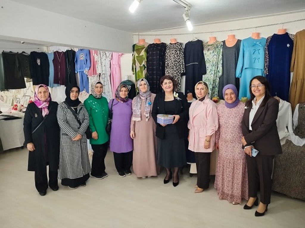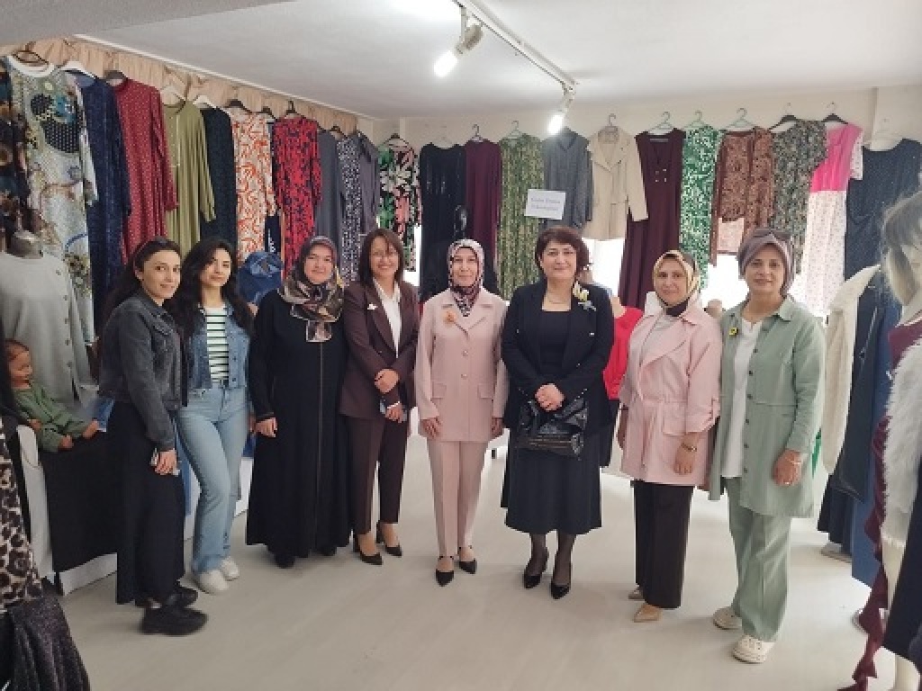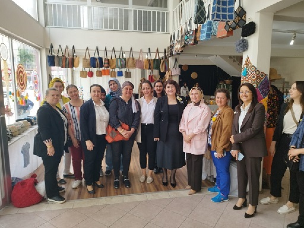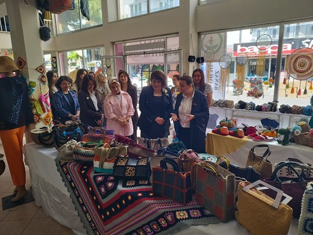 Sayın Valimiz Naci AKTAŞ' ın eşi Nagehan AKTAŞ ve Sayın Kaymakammız Cuma EMEÇ'in eşi sergimizdeki standları tek tek gezip beğenilerini dile getirerek; kursiyerlerimizin ve Usta öğreticilerimizin motive olmasını sağlamışlardır.